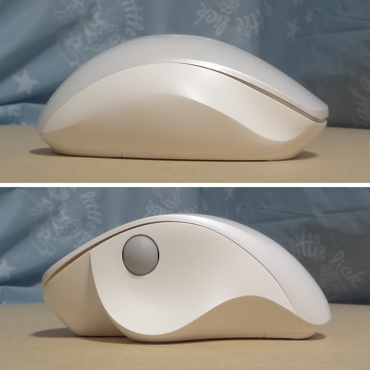 ただし親指がスクロールしやすいようにお皿の内側みたいな形状になっているため、マウスを持ち上げたい時、持てません。大きく動かさないときは良いですが大きく動かすのは無理な形状。マウスとしては致命的な欠陥かと思います。