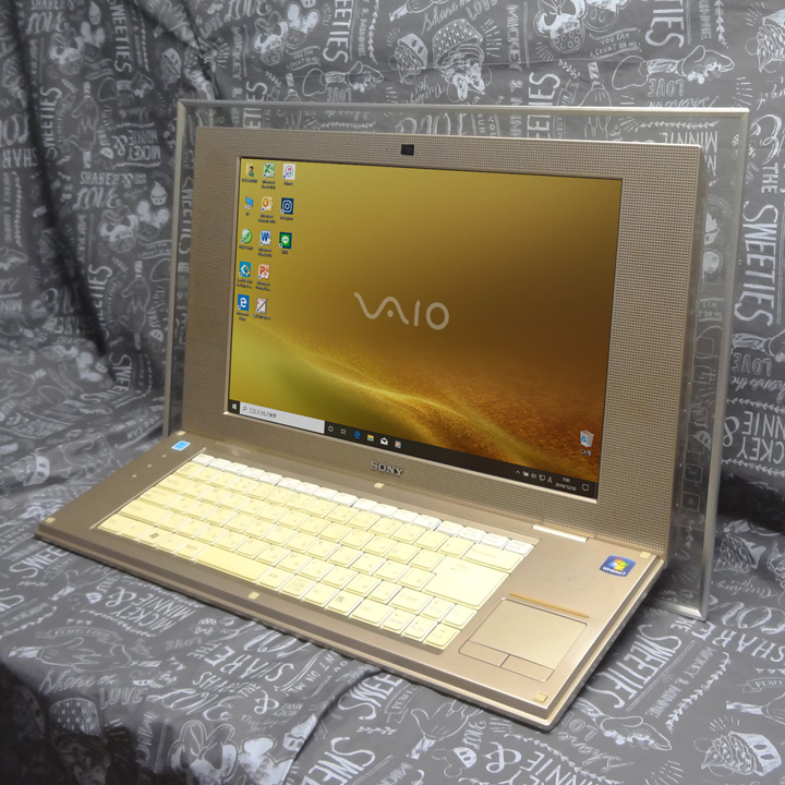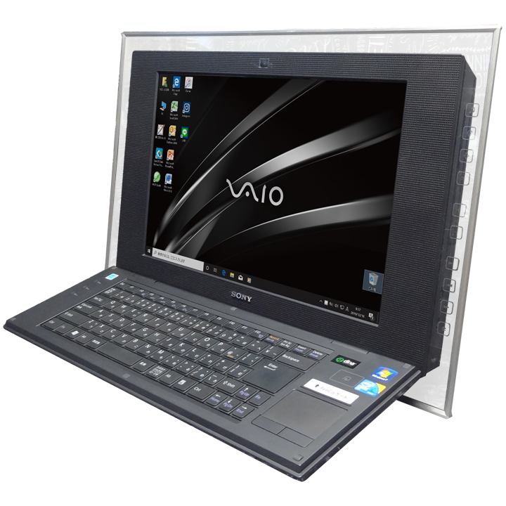 キーボードを折りたためる新しいデザインのパソコン、Sonyらしい一品かと思います。また持ち運びできるようバッテリーも搭載されています。また持ち運んで音楽を聴く際にキーボードを開かなくてもガラス部分で操作できるタッチパネル仕様になってます。