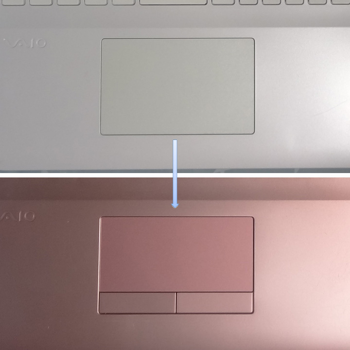 タッチバッド、上写真がFit 15E~VAIO S15(第六世代)までのタッチパッド。VAIO S15(第七世代)より下写真の様にクリックボタンが独立しました。個人的にはクリックボタンが独立していたほうが使いやすいです。